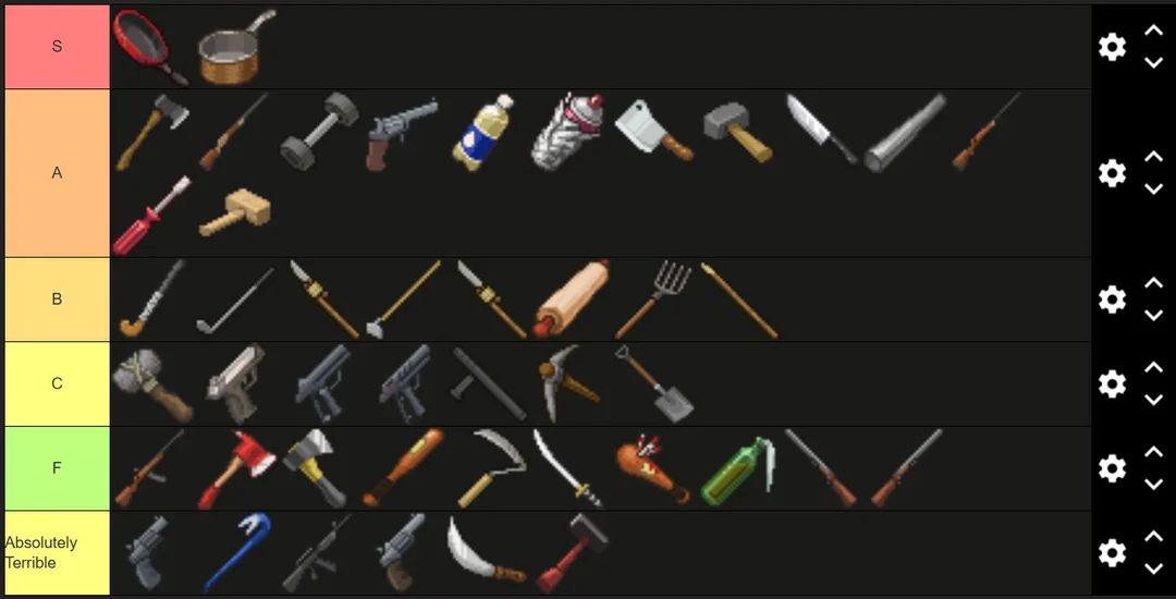 | Horde clearing; loud but powerful | Ranged | Shotgun |
